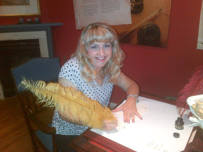 In the picture avbove I am with fellow Harlequin author Rachel Brimble, playing Regency dress-up at the Jane Austen Center. I am on the right.