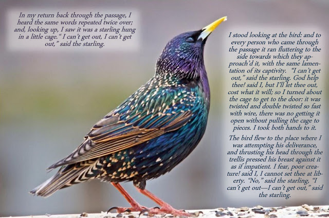 As the earl steered him back toward the ballroom, Darcy happened to glance around and caught sight of a breathtakingly beautiful woman. She had been seated on the other side of a large marble pillar that had obstructed her from his view, else he might have stared at her through the entirety of the meal. He watched as she left the ballroom, visibly eager to detach herself from her dinner partner. Without realizing what he was about, he broke away from his uncle and drifted toward the beauty in black.No, it was not black, not entirely. Her form fitting silk gown was covered with an iridescent gossamer netting, embroidered with gold and violet, making the black gown shine brilliant blue and purple in the candlelight as she moved into the ballroom. She wore an elaborate black wig, her curls held up by little gold and silver pins shaped like stars, and there were delicate white stars adorning the bodice of her gown and her black feathered mask as well.As Darcy drew nearer, she had just managed to extricate herself from Lord Chawton, a rake of the first order who had only been invited because he was a political ally of the earl. He was also more than ten years older than Darcy, and the way he clutched the young lady’s hand as he kissed it was revolting in the extreme.“Fare thee well, for now, my fair lady raven,” Chawton said to the woman before moving away. She abruptly turned and moved the opposite way, putting her into Darcy’s path, and as she moved past him she muttered, “I am not a raven.”“You are a starling,” Darcy blurted out as she walked his way, and she looked up at him with surprise before breaking into a smile.“Yes,” she breathed. “Nobody has noticed it, and I thought it was so clever of me.”Darcy smiled and stepped closer as the delightful creature began to laugh at herself. “It is a delightful costume, and plain to me what you had intended.”“That is kind of you to say, sir.”“Perhaps, as I am the first to guess it correctly, you might favor me with a dance, Miss…?”Her eyes sparkled, and though the beautiful starling did not volunteer her name, she offered him her little white hand. As he led the radiant starling to the set, he could not keep his eyes off of her. The elaborate mask shielded much of her face, but for her remarkably expressive eyes and a delicate pair of rosy lips. It did not matter to him – he was already convinced that under the mask she was very likely the most beautiful woman in the room – she was certainly very shapely, and her dressmaker must have known what they were about.“You said you felt rather clever about your costume,” he prompted her as they began to move through the steps of the dance.“Oh,” she said, twisting her lips into a mischievous smile. “I suppose it is something of a rebellious impulse on my part.”“Rebellion?” Darcy grinned, though it was hidden by his medieval helmet. “You seem rather satisfied with yourself.”“In my family, one must claim what victories they can. They are... difficult, at times.”He laughed. “I know just what you mean. So, your costume is a triumph. I suppose you mean you have outshined all your sisters?”“No indeed, that is quite unlikely to ever happen, nor would I wish it,” she replied. “I meant to say that there is a hidden meaning to my costume, intended for my own private amusement.”As Darcy turned in time with the other dancers, he smiled to himself at the impertinent candor of his partner – he had never undertaken such banter with a beautiful woman, and could only marvel at her artless charm. He considered her words – secret rebellion against her difficult family, perhaps not something a gentleman should condone… and yet her poise rendered her quite flawless. And then it struck him.“I believe I must venture a guess,” he said. “Are you a great reader?”“I should think I am,” she said with a wide smile.“Laurence Sterne?”She gave a single breathless laugh and then nodded, as if embarrassed. “The Hotel at Paris. It is one of my favorites.”Keeping time with the music, Darcy and the starling placed their hands together as they spun. “‘I can’t get out, said the starling.’”She locked eyes with him as she recited, “‘I can’t get out, I can’t get out.’”“‘God help thee said I, but I’ll let thee out, cost what it will,’” he said, completing the quote. Darcy held her gaze for a moment, feeling as though he was seeing her for the first time. She was witty and magnificent, but there was something almost sorrowful about her.She was the first to turn away, seeming suddenly embarrassed. “Oh, my goodness, I am being rather too maudlin for a ballroom, am I not?”“Certainly more honest than one usually finds in such places.”Darcy considered. He did not know her identity, nor she his, and yet she had spoken forthrightly. Perhaps because she did not know him, she had spoken so openly. It occurred to him that he might do likewise, and for once simply enjoy the company of a pretty woman without being known as nothing more than Darcy of Pemberley with ten thousand a year. He might be anyone, to her; yet she seemed to like him on his own merit alone. It was not something he frequently experienced in London society.He was suddenly overcome with a desire to really make himself agreeable to her, to discover if he might be able to exert his full powers of pleasing a woman who knew nothing of his wealth, and he was fascinated enough by his partner to want to know more about her as well.Still feeling all the intensity of what she had said before, Darcy asked, “Do you really feel trapped by your family?”“I ought not to have said it.”“I do not know you, nor you me – why should we not speak freely?”“Do you speak as a general rule while dancing?”“In fact, I do not. I have never been thus intrigued. I should like to hear whatever you wish to say.”She laughed nervously. “Do you seek to gratify my